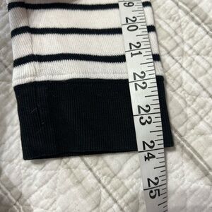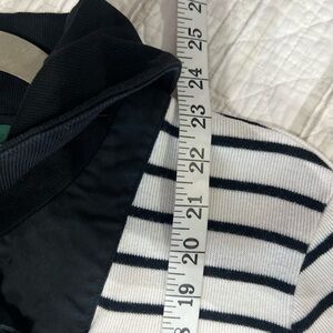 Lauren Ralph Lauren striped cotton shawl neck top in navy blue and white with toggle closures