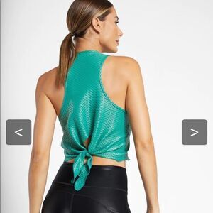 The Raegan Shiny Netz Tank brings some drama to any athleisure look. Our signature Netz™ fabric provides extra breathability to an already loose fitting top. A tie-back detail and sleeveless cut make it perfect to wear with a fitted jean or a pair of coordinating leggings.