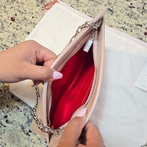 NEW Christian Louboutin Loubitwist Leche Nude Clutch with Silver Chain