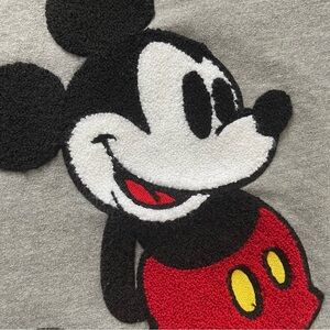 Cozy and classic Disney crewneck sweatshirt. Featuring a large, vibrant plush terry applique graphic of Mickey Mouse, this heather grey sweatshirt is perfect for any Disney enthusiast. Made from a comfortable cotton blend, it offers a regular fit and soft feel, ideal for everyday casual wear. A versatile piece that adds a touch of nostalgia to any outfit. Size L. Like new condition.