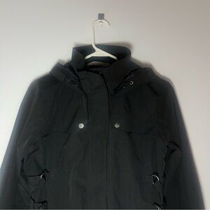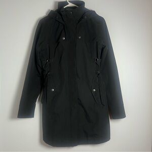 ATHLETA Women’s Midtown Rain Trench Coat Size Small Hooded Black Jacket