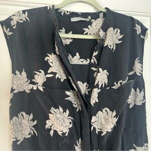 Vince 100% Silk Floral Sleeveless Jumpsuit in Navy