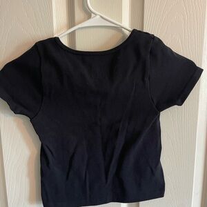 Soft and seamless black tee. Perfect for casual wear. Short sleeves for comfort.