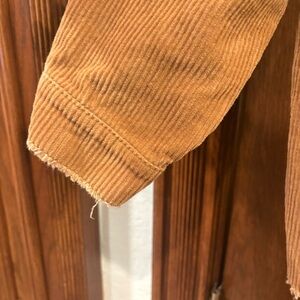 Elevate your layering game with this effortlessly cool Zara corduroy shirt jacket (shacket). Featuring a rich tan/camel color and a classic wide-wale texture, this piece offers a relaxed, oversized silhouette perfect for a boho or streetwear aesthetic. The raw, frayed hem and cuffs add a distressed, vintage-inspired touch.