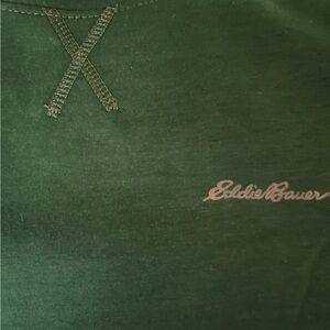 Men’s Eddie Bauer Comfortable green tech crew shirt. Ideal for everyday wear. I have a green Medium left. Medium is p/p 21” and 25” L From Smoke free home. Very nice shirt Have one zippered pocket on front.