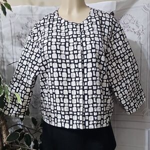 Lafayette 148 NWOT New York Patterned Bla K/Cream Jacket Large