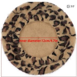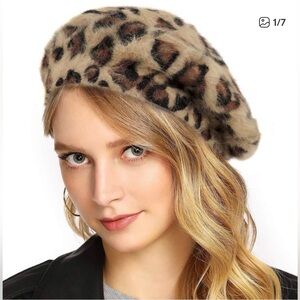 Chic angora blend beret in a leopard pattern. Adds elegance or edge to any look.
