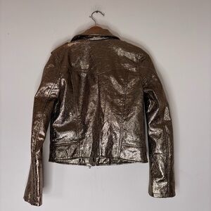 BLANKNYC vegan leather Gold Metallic Zip Biker Moto jacket size X Small