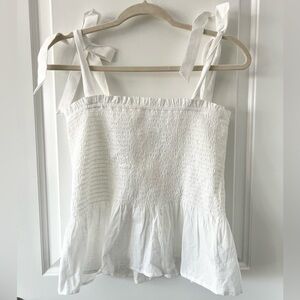 NWT J. Crew Factory White Smocked tie-shoulder tank top Size Medium