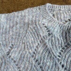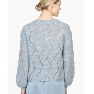 Blue pointelle boatneck alpaca blend balloon-sleeve sweater. Never worn. Excellent condition.