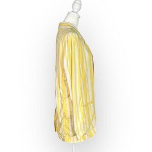 Willow Meyer Blazer Women's Small Yellow White Striped Linen Blend Long Sleeve