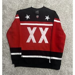 Stadium Men’s XXL Hockey Jersey Style Crewneck Sweatshirt Red Black Stars XX