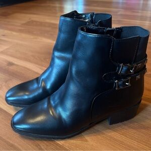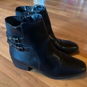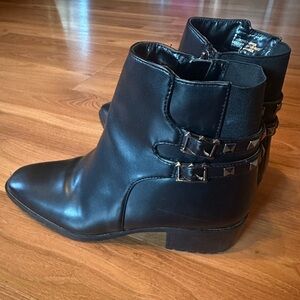 Anne Klein Black Leather Ankle Boots with Studded Straps
