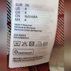 H&M Red & White Plaid High Rise Pleated Front Tweed Trousers Pants Size 4