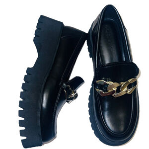 Stradivarius Chunky Lug Sole Loafers Black Gold Chain Platform EU 39/ US 8.5