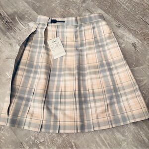 Plaid A-Line Pleated Skirt in Gray and Cream NWT