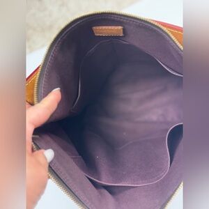 Louis Vuitton shoulder bag with iconic monogram. Features brown and tan leather accents. Perfect for stylish outings bag in good condition all bachetta leather dark and dry with some dark spots inside dirty no lock only key,