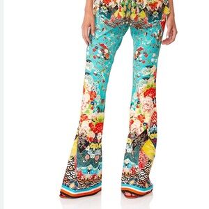 Camilla Flared Pointe Trouser Floral Print Wide-Leg Pull-on Pants size large