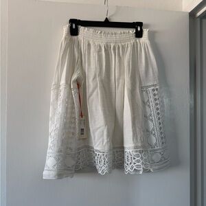 Chic jacket with black script on white fabric. Features a full zip closure. Size 8. In really good condition — like new. No stains, smoke free home.