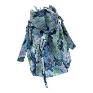 The Vera Bradley Turtle Dream Blue & Green Quilted Glenna Satchel Handbag is a stylish and versatile option for women who love a pop of color and a unique pattern. The bag features a rectangular shape with a zip and drawstring closure, making it convenient for travel and daily use. The exterior is made of cotton with a quilted finish, showcasing a vibrant multicolor design with turtles as the main theme. The double handles and silver hardware add a touch of elegance, while the shoulder strap provides added comfort and convenience. Overall, this large handbag from the Vera Bradley Glenna product line is perfect for casual outings, workwear, or party occasions.