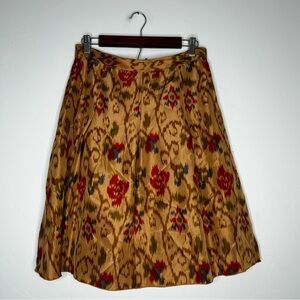 NWT J Jill Floral Ikat Silk Fit and Flare Skirt Size 8 Petite Fall Autumn Office