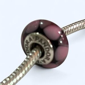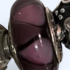 Retired Pandora Captivating Purple Murano Glass Bead charm with a sterling silver core.