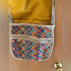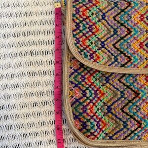 Like new M.M.M. Artesanias vintage boho crossbody bag. Features a non-adjustable shoulder strap, yellow lining, two zipper pouches, and a colorful yarn design. Handmade in Mexico. No signs of wear or damage.