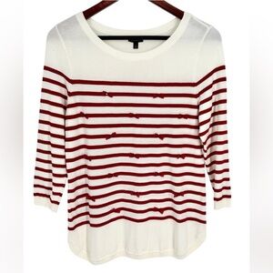 Talbots Red and Cream Striped Crew Neck Sweater