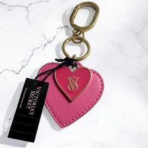 Times two. This sweet Bag Charm features one sleek VS Logo heart and one faux leather heart for twice the flirtatious style.