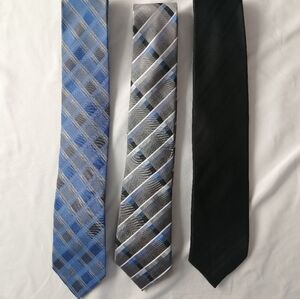3 Tie Bundle 100% Silk Men's Ties Calvin Klein and Protocol Black, Silver, Blue