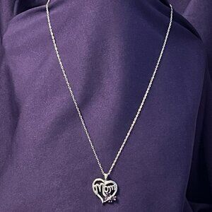 Sterling Silver MOM Heart Pendant, Amethyst & Diamond Accent - Mother’s Day Gift