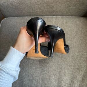 One gem on the left heel is missing (5th pic) some wear on sole and front of heels but nothing major in my opinion.