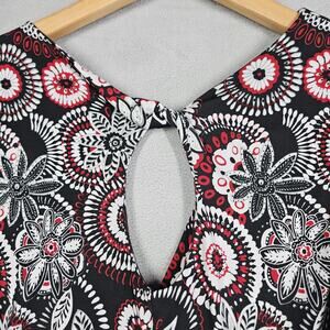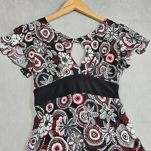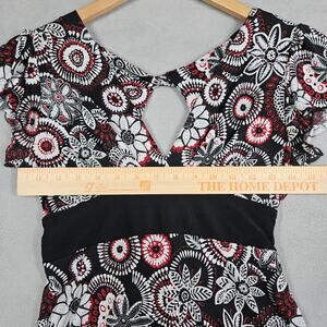 Vtg Y2K Wrapper Babydoll Blouse Womens Small Floral Black White Red Tie Back