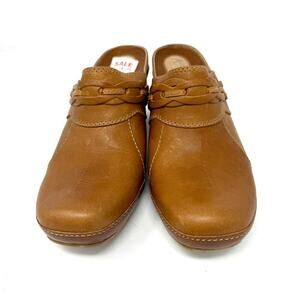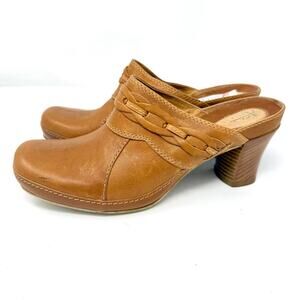 Clarks Artisan Octavia Mule Clog 8.5 Peanut Leather Braided Details 3" Heel NIB