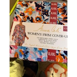 Anne Cole Womens Swim Cover Up XL XXL Rayon Floral Adjustable Tie Neck