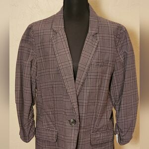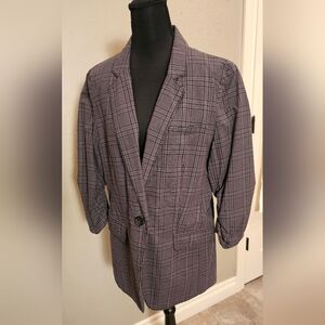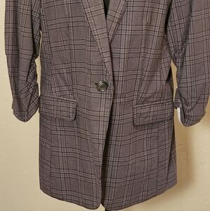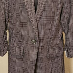 [EXPRESS] NWOT Blazer Stretch Cinched 3/4 Sleeves《12》Plaid/Grey