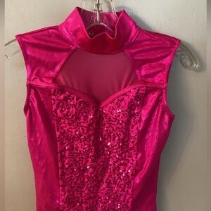 BALERA ADULT MEDIUM CERISE PINK METALLIC SEQUIN PANEL LEOTARD