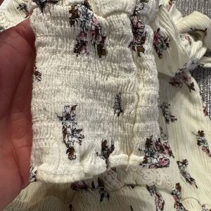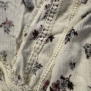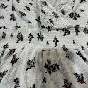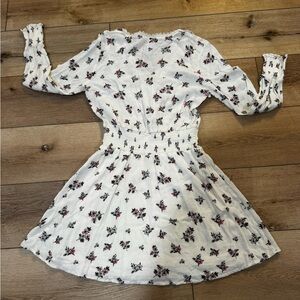 American Rag white floral A line mini skirt, elastic waist, long sleeves, XS.