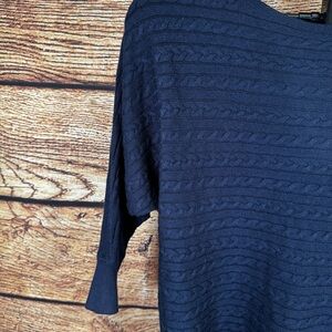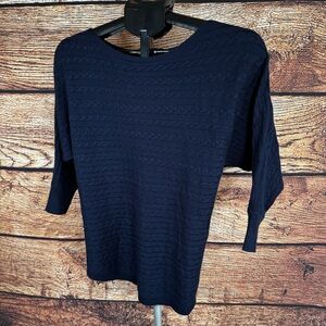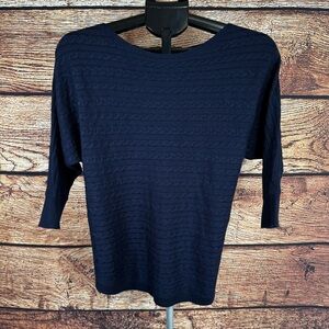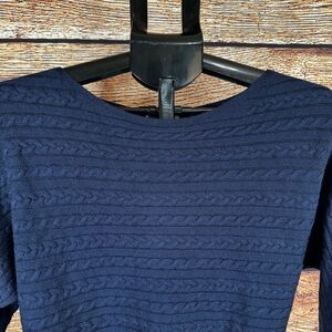 Elegant navy sweater with a classic crew neck. Features a textured pattern. Perfect for layering.