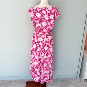 BODEN Adelina Jersey Midi Dress in Pink Floral J0164