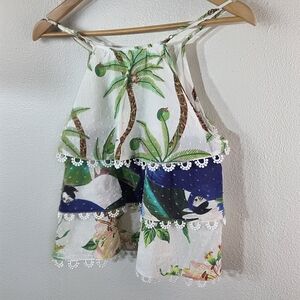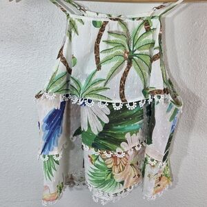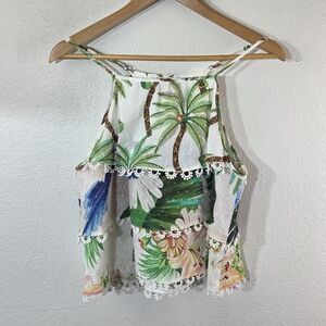 Women’s Farm Rio Beach Palm Tree Tropical Scallop Tank Top XS