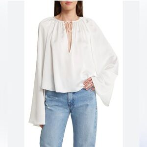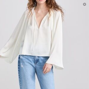 Ivory Frame gathered V neck blouse with tie-front detail. Flowy and elegant design. Perfect for any occasion.