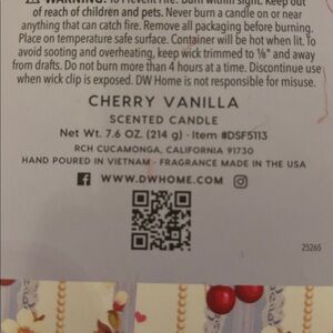 DW Home Cherry Vanilla Candle with Red and Cream Design
