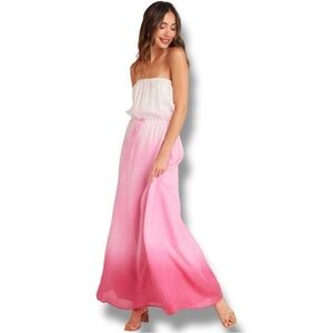 Bella Dahl Stylish chic Pink Ombre Dye Linen Lightweight Strapless Maxi Dress