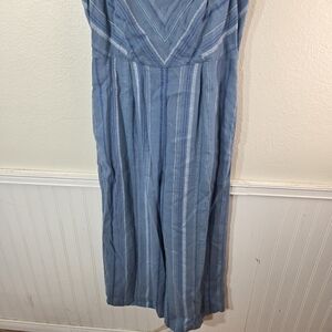 Women’s Anthropologie Blue Striped Linen Cotton Blend Boho Jumpsuit Size 12