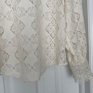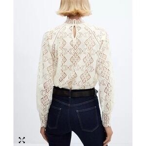 Mango Ruffles Embroidered Floral Lace Long Sleeved Top Blouse Cream Ivory Size 6