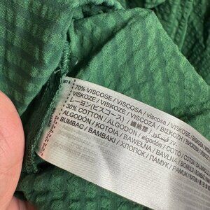 Mango MNG Midi Dress Womens XL Green Striped Boho Puff Sleeve Twist Wrap Tie