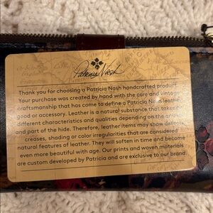 Artistic Patricia Nash wallet with a unique design. Features a blend of dark tones with light tints. this is a good old-fashioned, equestrian, hunter scene, including horses and hounds. As always, her quality is exceptional.