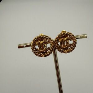Chanel Gold Interlocking Clip Earrings