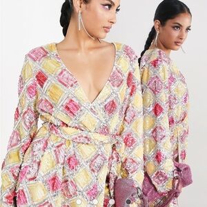 ASOS EDITION embellished belted wrap mini dress in diamond sequin